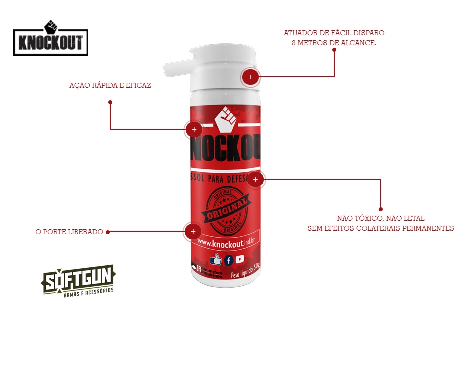 O Aerossol KNOCKOUT é indicado para qualquer pessoa sob ameaça de agressão física, estupro, violência doméstica ou roubo, quando o agressor não estiver portando arma, sempre objetivando a LEGÍTIMA DEFESA.